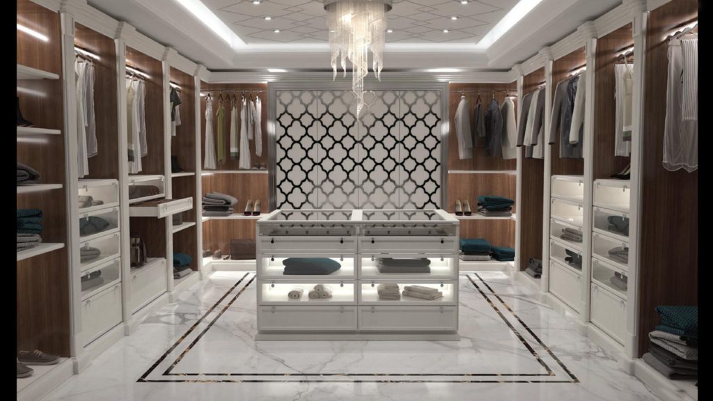 В сотрудничестве с группой московских дизайнеров и архитекторов был выполнен проект по созданию гардеробной комнаты, в которой полностью повторен стиль всего второго этажа загородного дома. Цвета и материалы стеновых, потолочных панелей и напольных покрытий удачно гармонируют друг с другом. Современная интерпретация античных стилей и декоров от Xenia. Цвета, текстуры и изысканные детали выражают благородный стиль, создают интимную атмосферу, дарят уникальные ощущения. Богатое внутреннее наполнение гардеробной предоставляет все возможности для бережного и аккуратного хранения повседневных вещей.