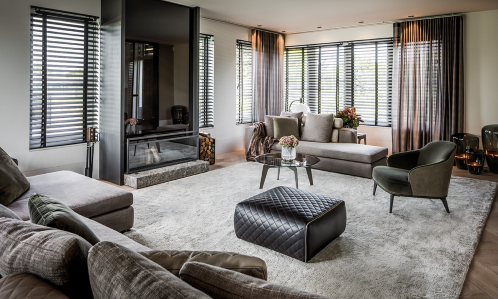 В оформлении этого интерьера использовали сочетание современного дизайна и скандинавских традиций. Разделение пространства, а также концепция внутреннего декора были специально спланированы, чтобы обеспечить атмосферу гостеприимного тепла и изысканности, идеально подходящую для большой семьи. Эта гостиная обставлена ​​диванами фабрики MINOTTI модель Leonard и шезлонгом из той же коллекции. «Кресла» Leslie с комбинированной отделкой из кожи нубук, а внутри, обитой лесным зеленым бархатом, сочетаются с журнальным столиком Kirk и пуфом Ashley с его тонким орнаментом и элегантными матовыми золотыми молниями.